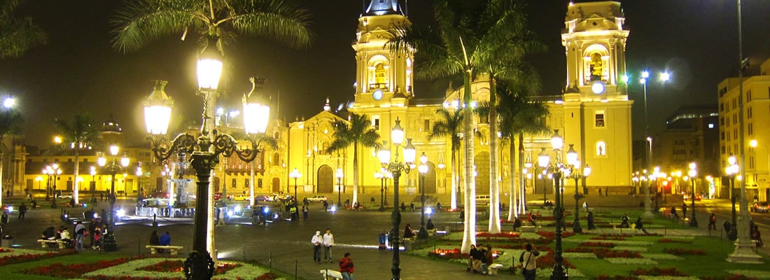 Lima de noche, nos muestra la belleza y el resplandor de una gran ciudad, sus bellos edificios del centro histórico iluminado como; la Plaza Mayor, el Palacio de Gobierno, sus bellas iglesias y casonas coloniales. Perfecto lugar para lograr sus mejores fotos, bajo en el embrujo de la noche.